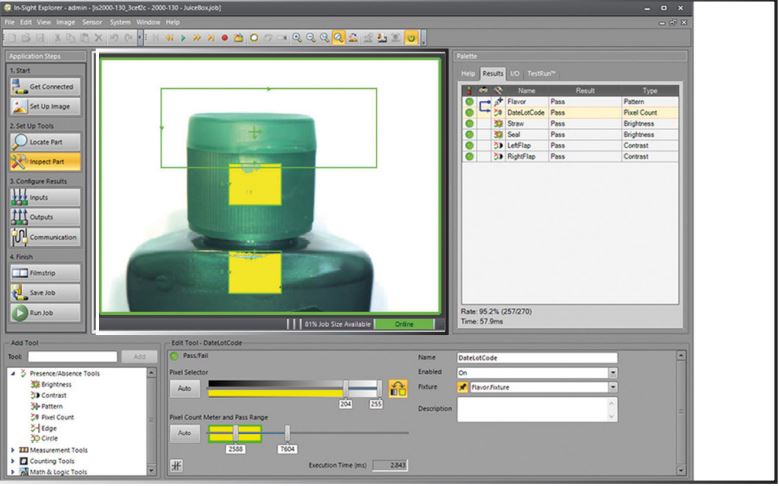 Tous les capteurs de vision In-Sight 2000 permettent de développer simplement des applications avec une interface EasyBuilder étape par étape et des fonctions d’inspection bon/mauvais.